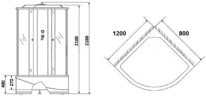 - Размеры (ШхВхД): 1200х2150х800 мм.