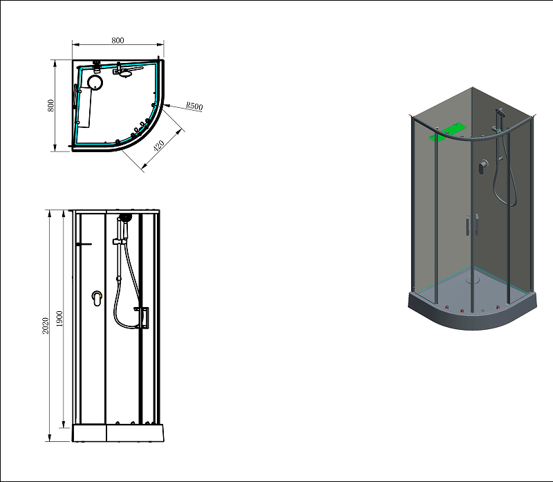 - Габариты (ШхВхД): 800х2020х800 мм.