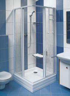 Дверь для душевого уголка Ravak Supernova SRV2 80 S раздвижная. Витраж из безопасного стекла толщиной 3 мм.