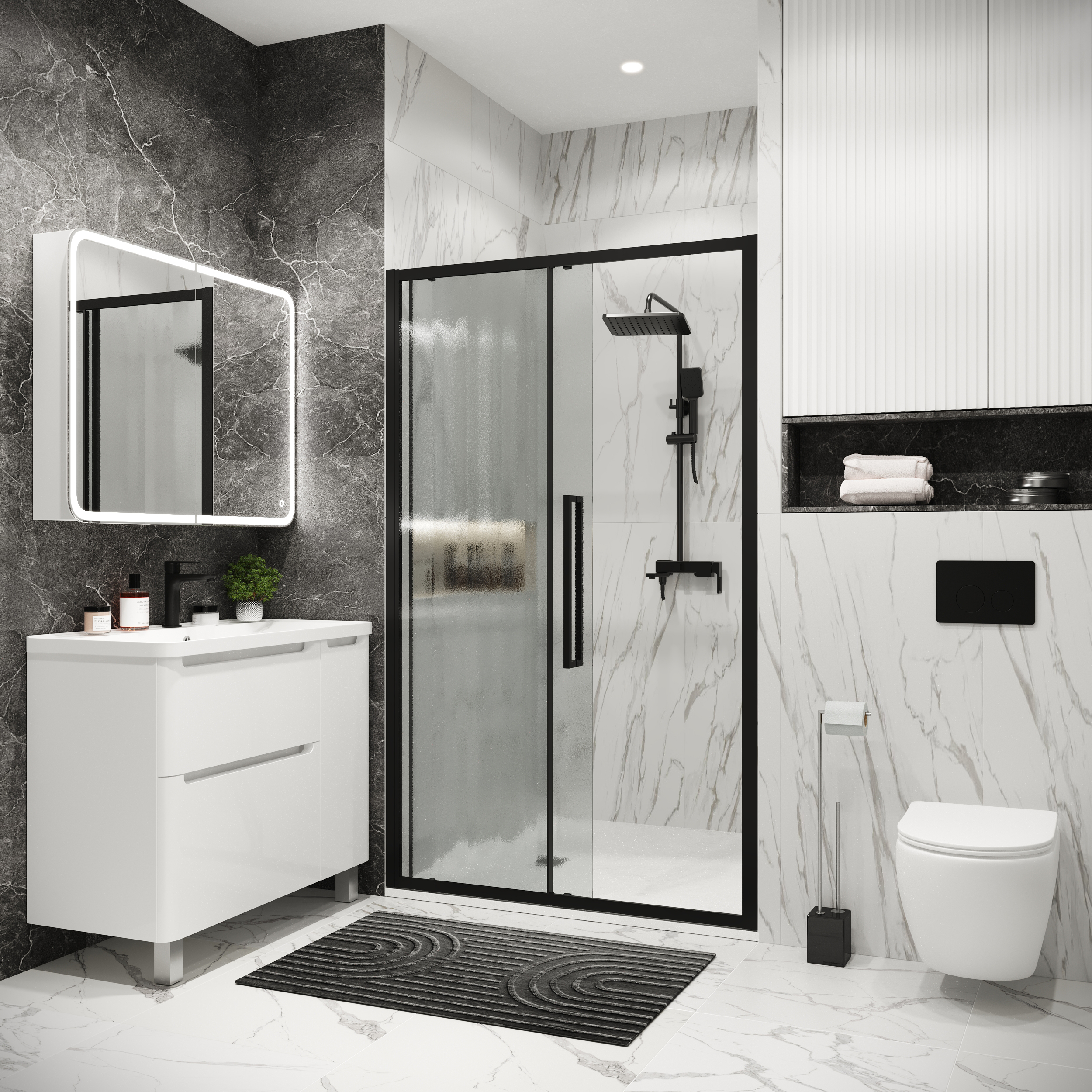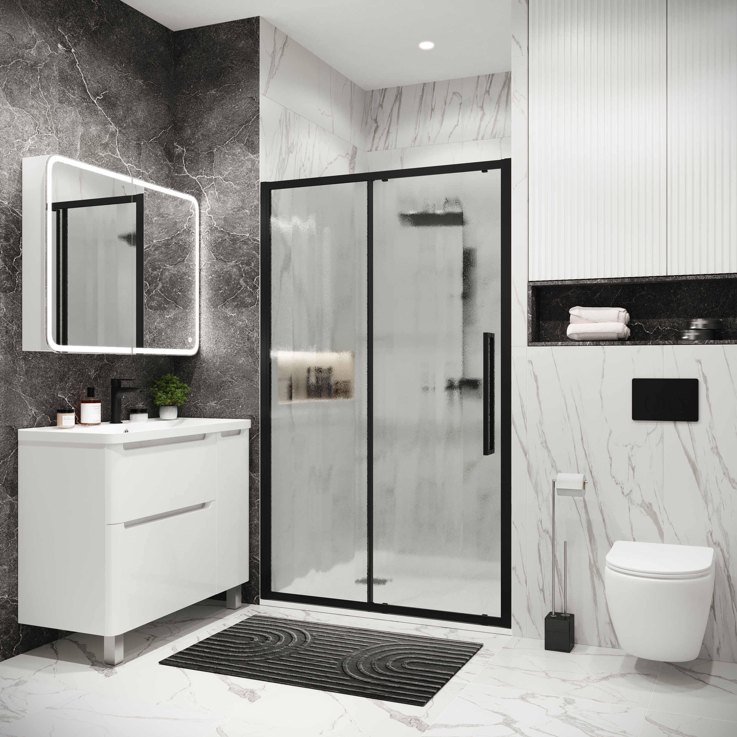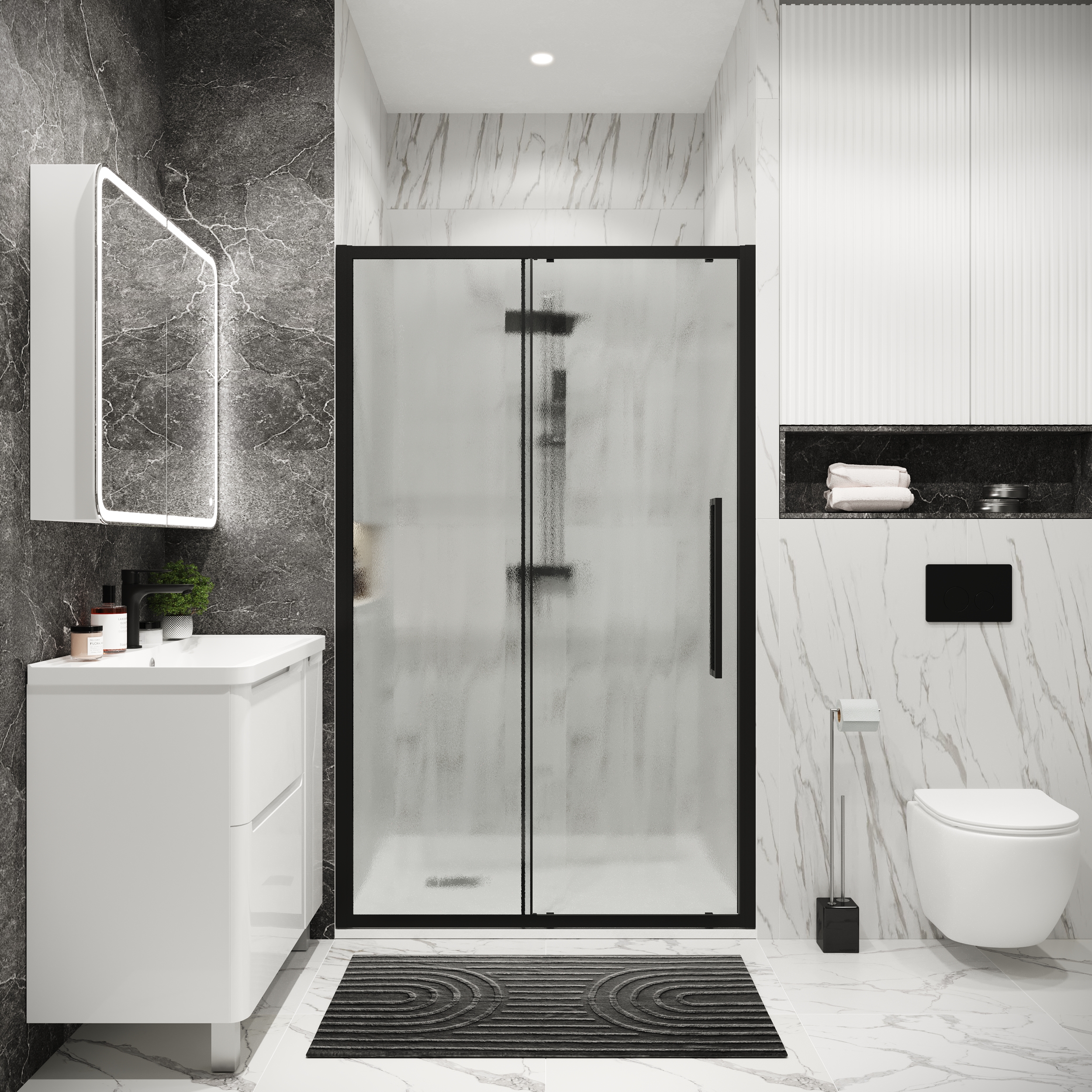 Дверь в нишу 100.K33.02.130.21.02 Cosmo (130*195) черный матовый, стекло шиншилла, 1 место