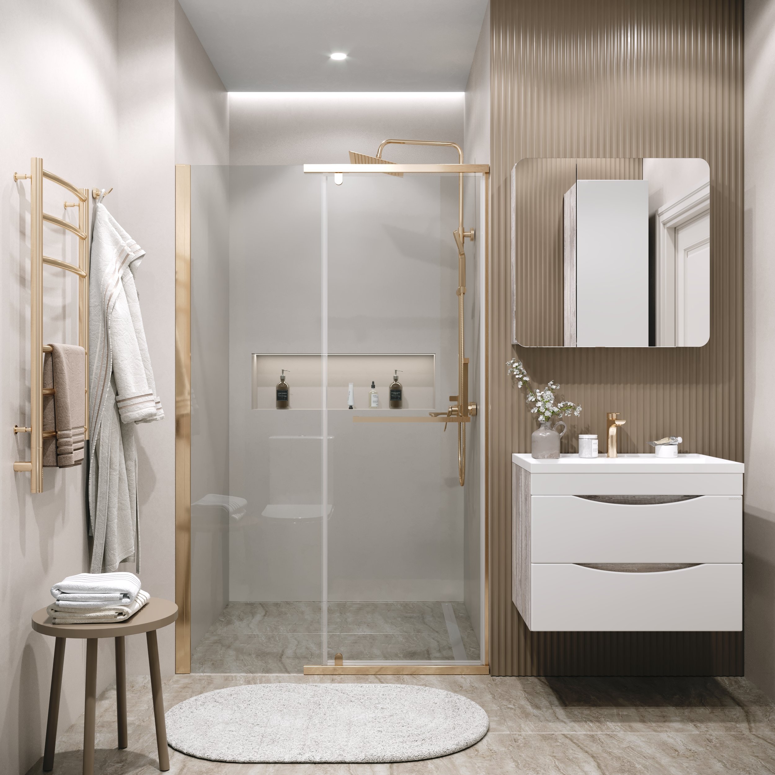 Дверь в нишу 100.K33.03.120.32.00 Pragma (120*195) золото сатин, стекло прозрачное, 1 место