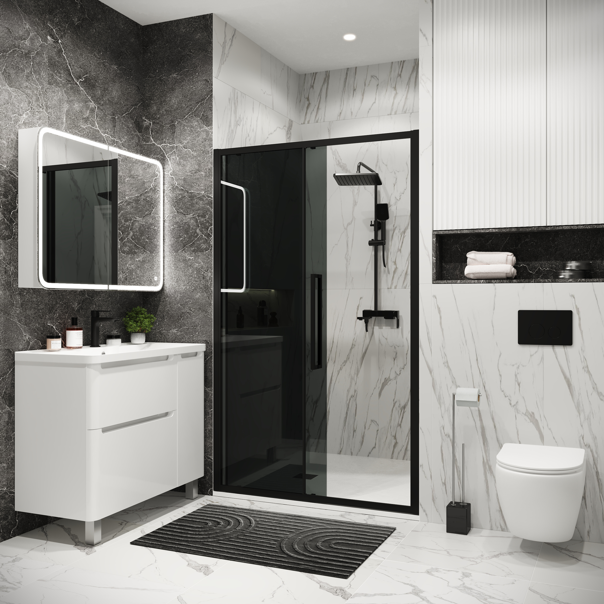Дверь в нишу Grossman Cosmo 100.K33.02.100.21.10 (100х195 cm) цвет профиля: черный матовый, стекло тонированное, раздвижная, 1 место