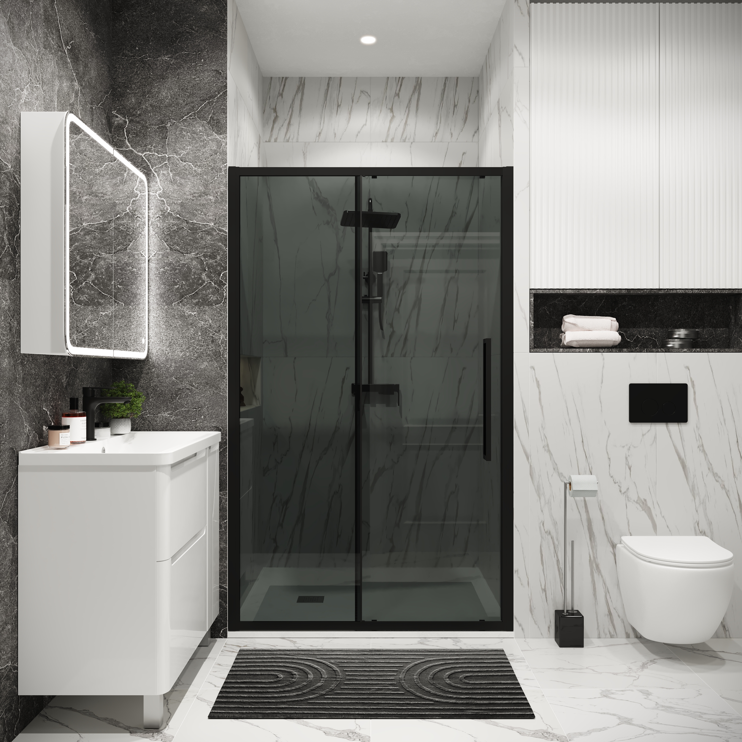 Дверь в нишу Grossman Cosmo 100.K33.02.130.21.10 (130х195) черный матовый,стекло тонированное,раздвижная, 1 место