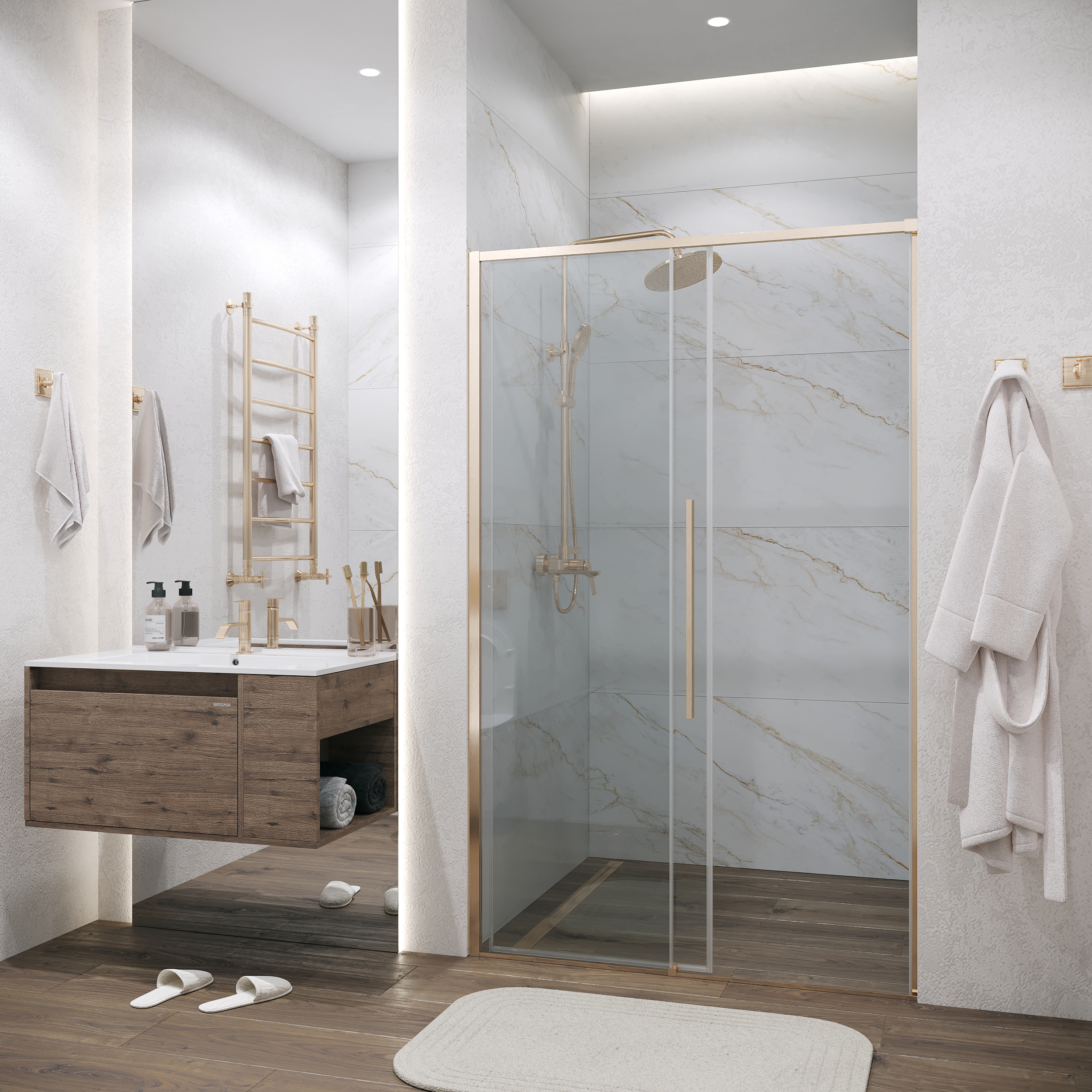 Дверь в нишу Grossman Galaxy 100.K33.01.140.32.00 (140х195 cm) цвет профиля: золото сатин, стекло прозрачное, раздвижная, 1 место