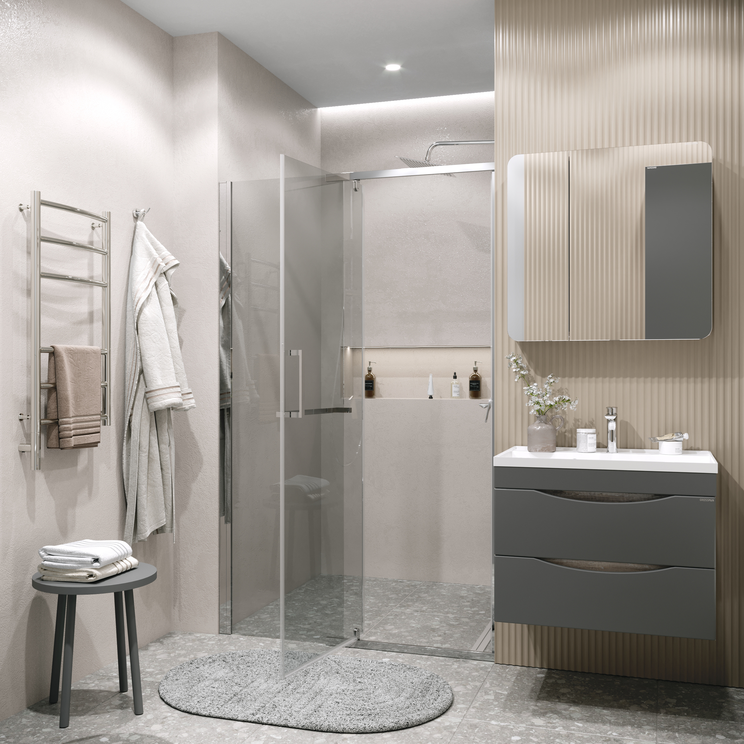 Дверь в нишу Grossman Pragma 100.K33.03.120.10.00 (120х195) хром,стекло прозрачное,распашная, 1 место