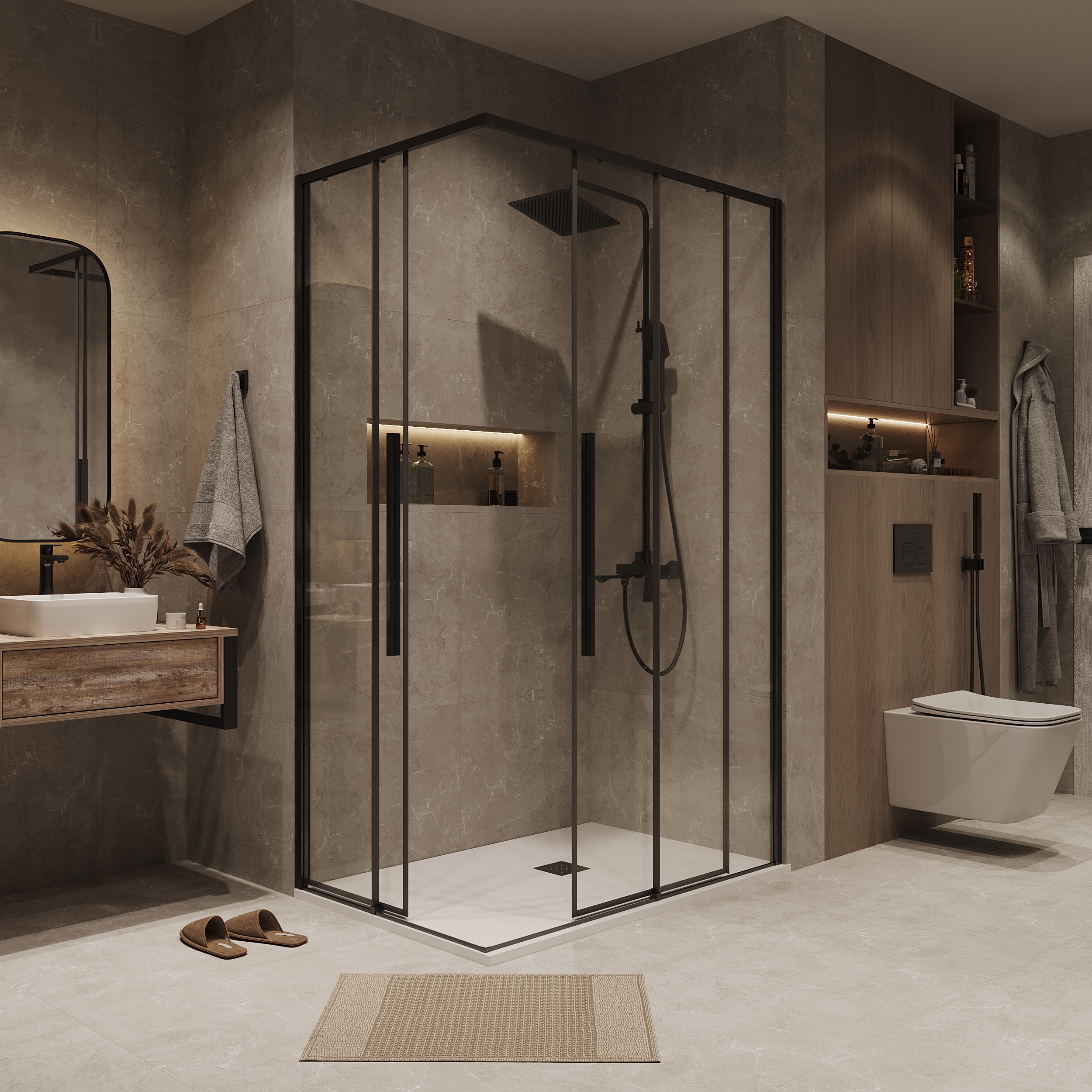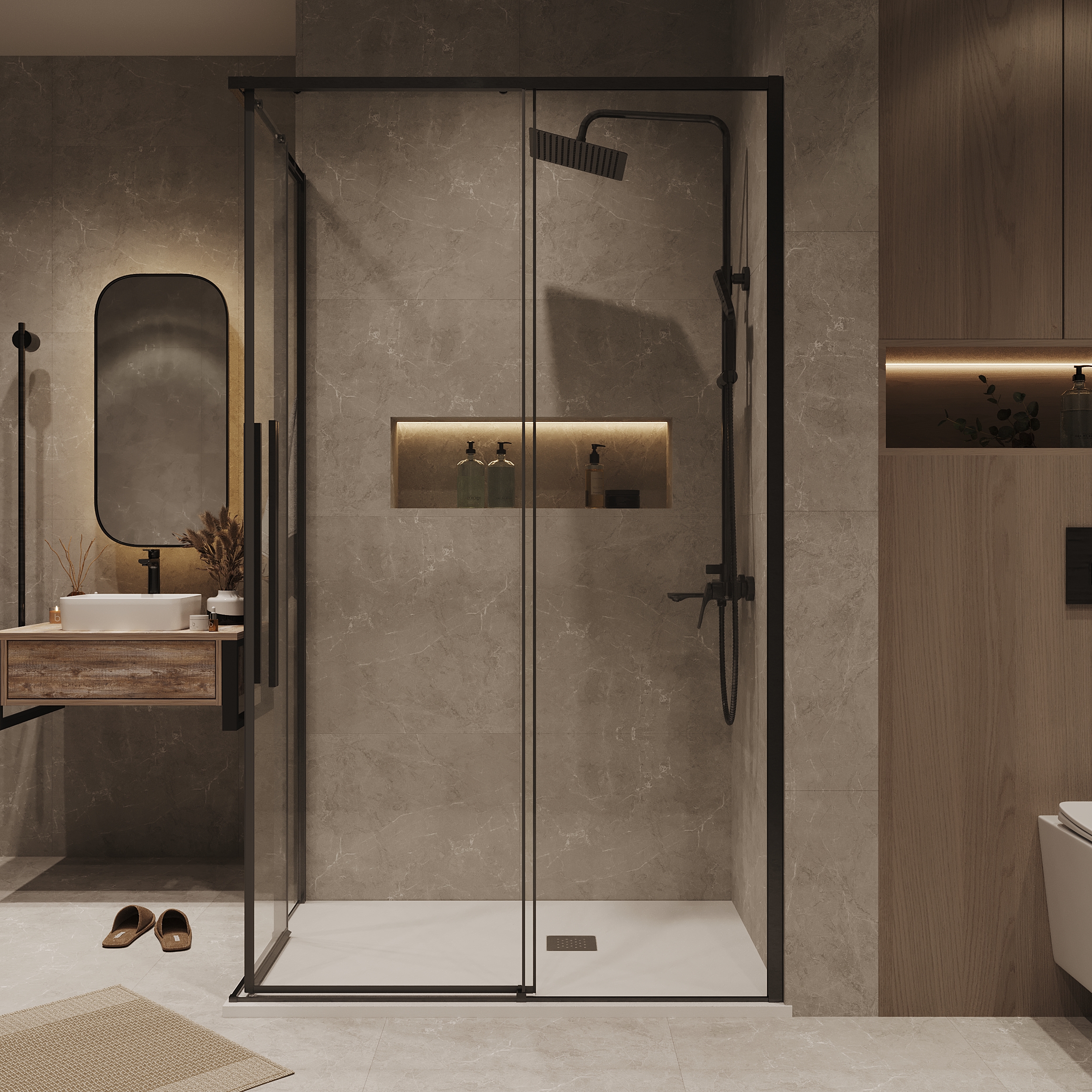 Душевое ограждение Grossman 1/2 круга арт. №K33.01.10.42.00-1/2.K33.01.80.42.00 (100х80х195 cm) дверь раздвижная, графит сатин, стекло прозрачное, 2 места: Форма: Прямоугольная