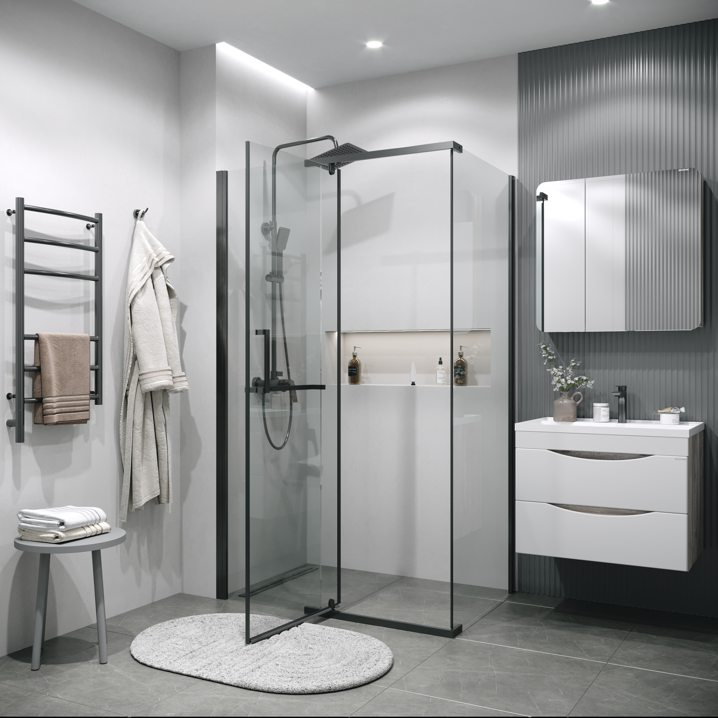 Душевое ограждение Grossman Pragma 100.K33.03.110.42.00-200.K33.03.90.42.00 (110х90х195 cm) распашная, графит сатин, стекло прозрачное, 2 места: Форма: Прямоугольная