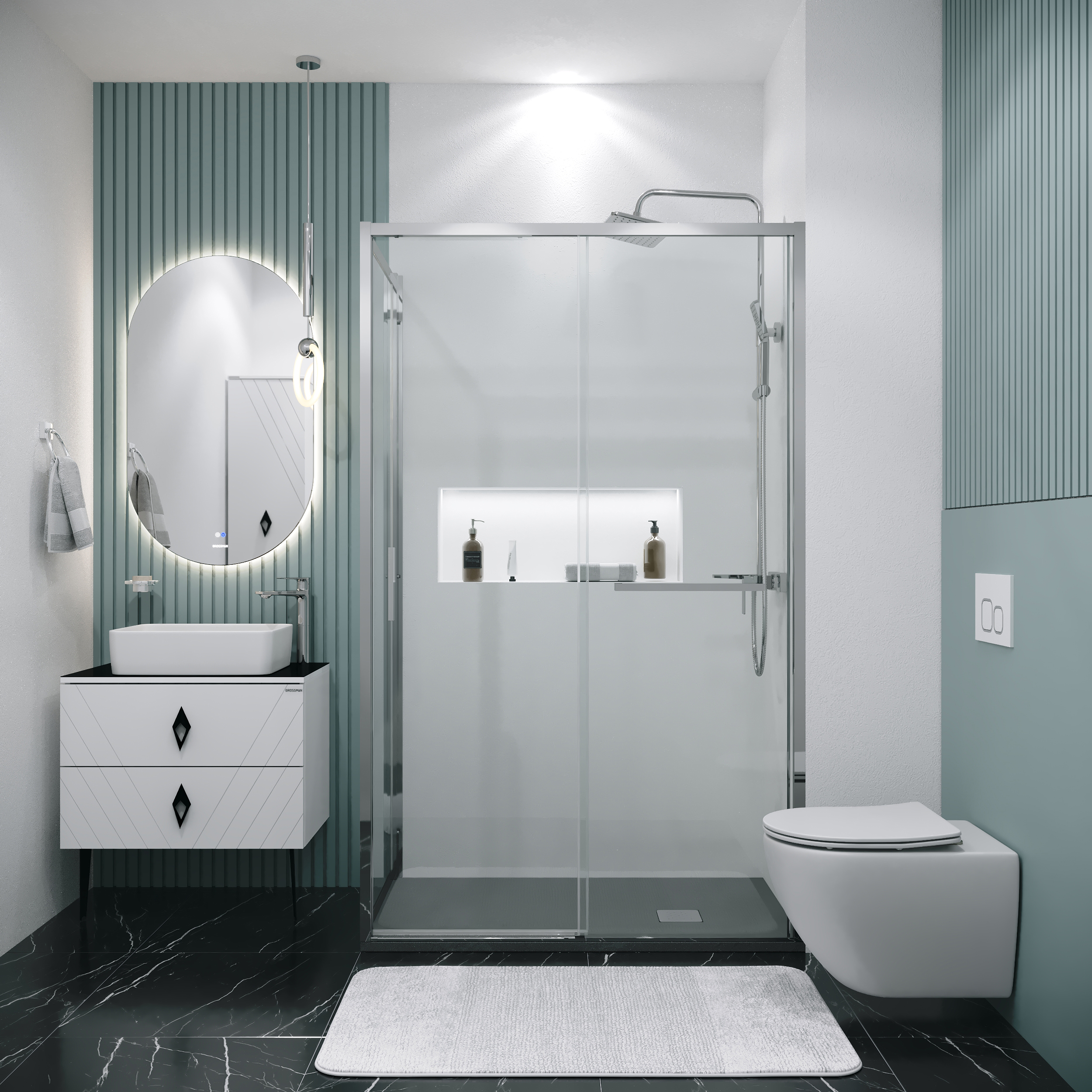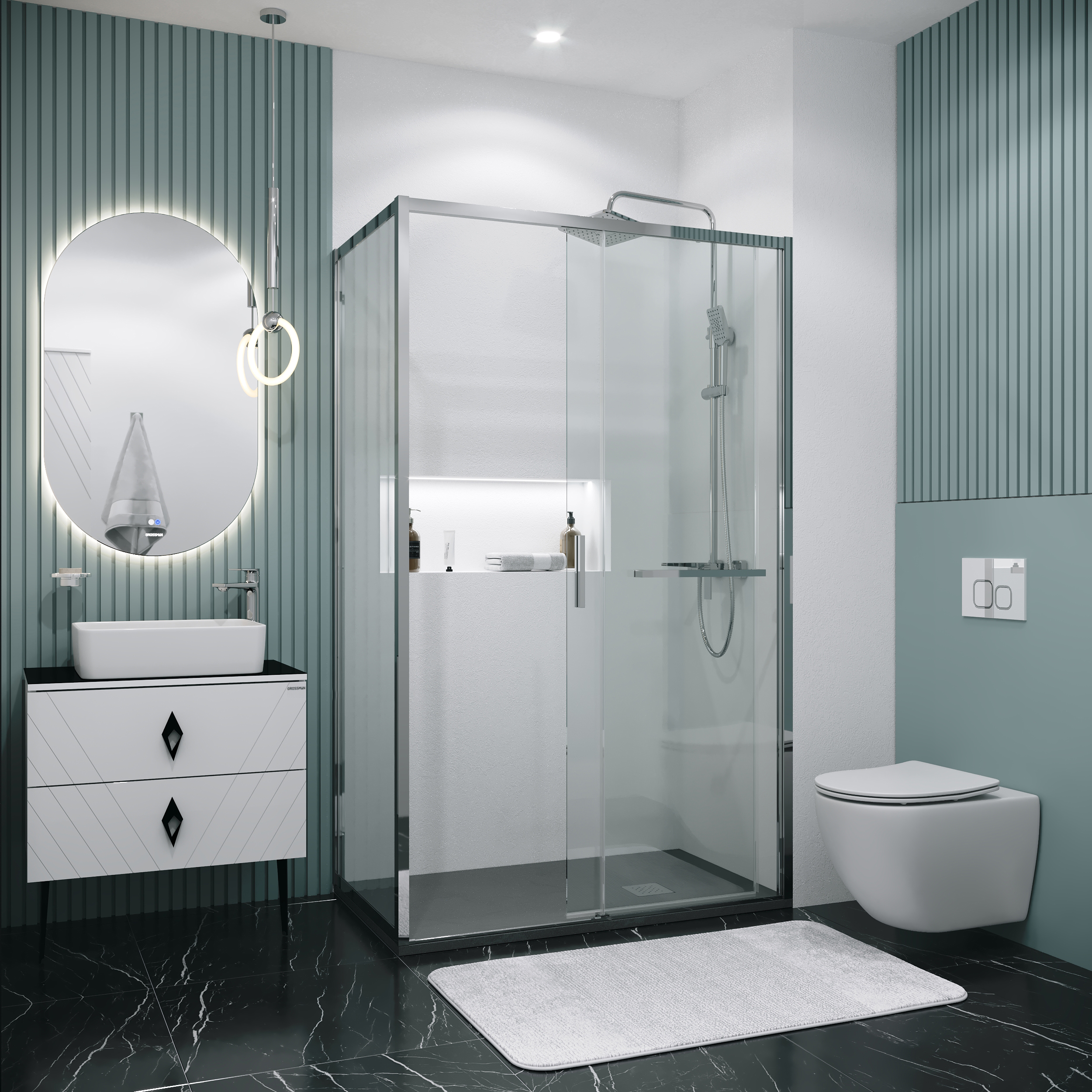 Душевое ограждение Grossman Style 100.K33.05.100.10.00-200.K33.05.90.10.00 (100х90х195 cm) дверь раздвижная, хром, стекло прозрачное, 2 места: Форма: Прямоугольная