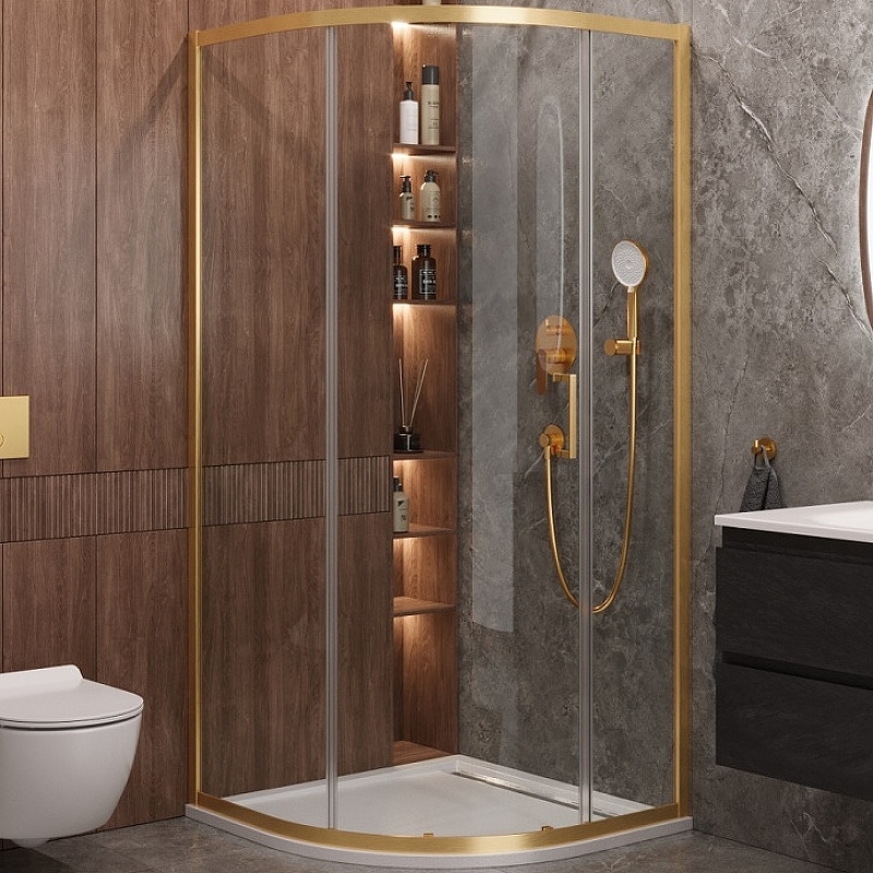 Душевой уголок Cezares Molveno 90x90 MOLVENO-R-1-90-C-BORO-IV профиль Брашированное золото стекло прозрачное