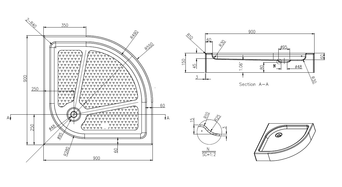 Душевой поддон Azario 900х900х150 R/L, для EDMONTON 2231 900/OTTAWA 2142 900/ONTARIO 2231 900