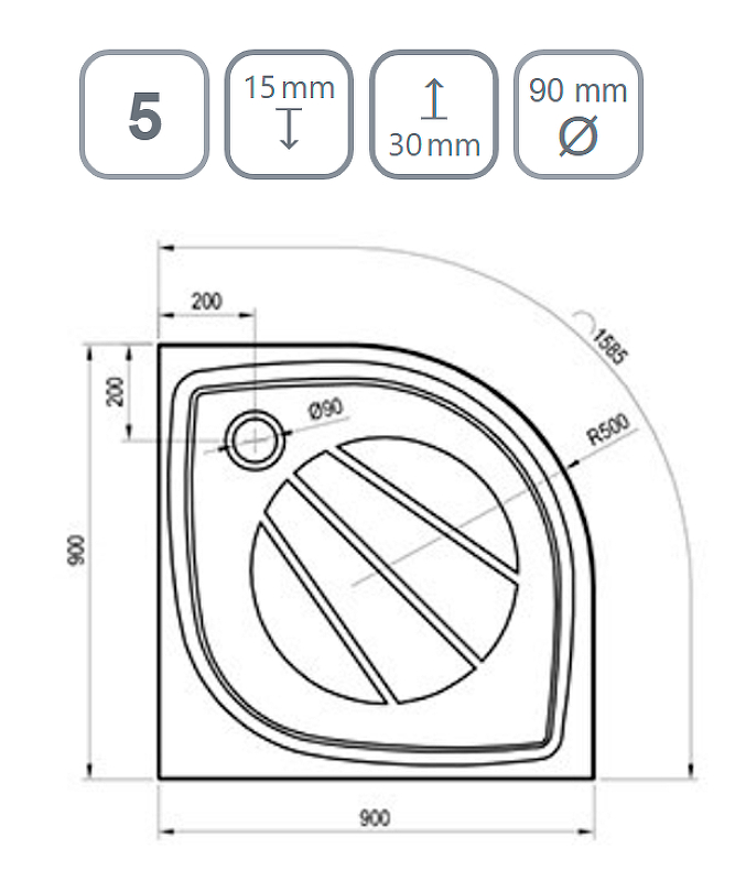 Поддон ELIPSO PRO-90 ЧЕРНЫЙ матовый