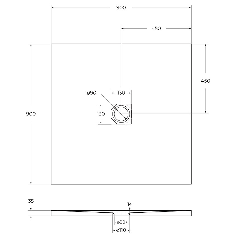 - Размеры (ШхВхД): 900х35х900 мм.