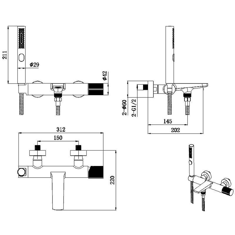 - Душевой шланг из нержавеющей стали SUS304, длиной 1500 мм.
