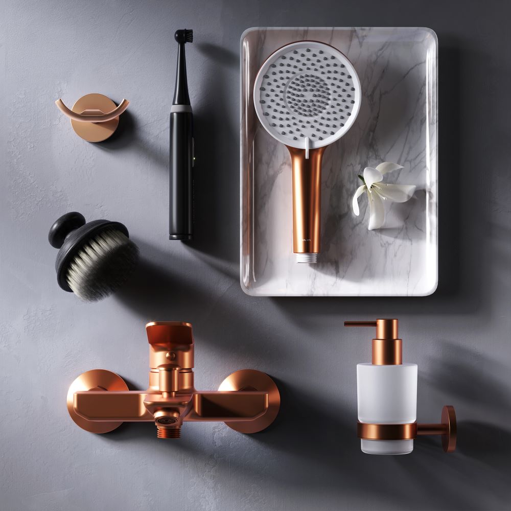 Настоящее произведение ювелирного искусства в вашей ванной комнате: нежный оттенок розового золота получается методом вакуумного напыления смеси 24-каратного золота серебра и меди в процессе которого микрочастицы сплава образуют стойкое соединений с латунной основой.