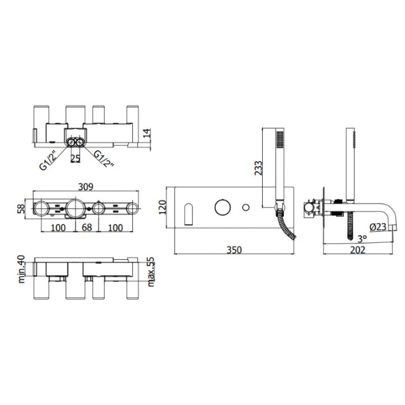 Тип: Встраиваемый смеситель для ванны/душа с двумя выходами