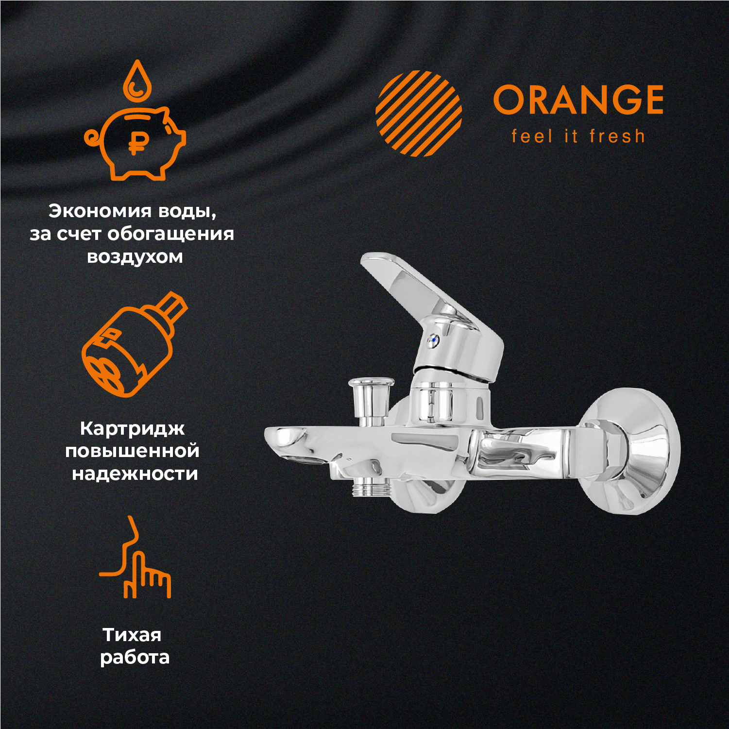 Однозахватный смеситель для ванны/душа с фиксированным изливом Orange FELIX станет украшением интерьера ванной комнаты. Его отличительная особенность - премиальный дизайн в стиле минимализм. Корпус выполнен из высококачественной латуни, не подверженной коррозии от длительного контакта с водой. Глянцевая хромированная поверхность служит защитой от коррозии и внешних механических воздействий. Фирменный керамический картридж Orange и эргономичный рычаг обеспечивают плавный уверенный ход без проскальзываний. Аэратор экономит воду и, обогащая струю воздухом, делает её мягкой и без брызг. Переключение между режимами душ/ванна осуществляется с помощью вытяжного дивертора.