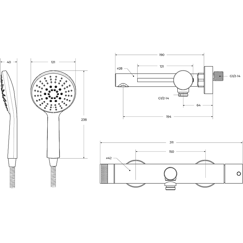 - Душевой шланг.