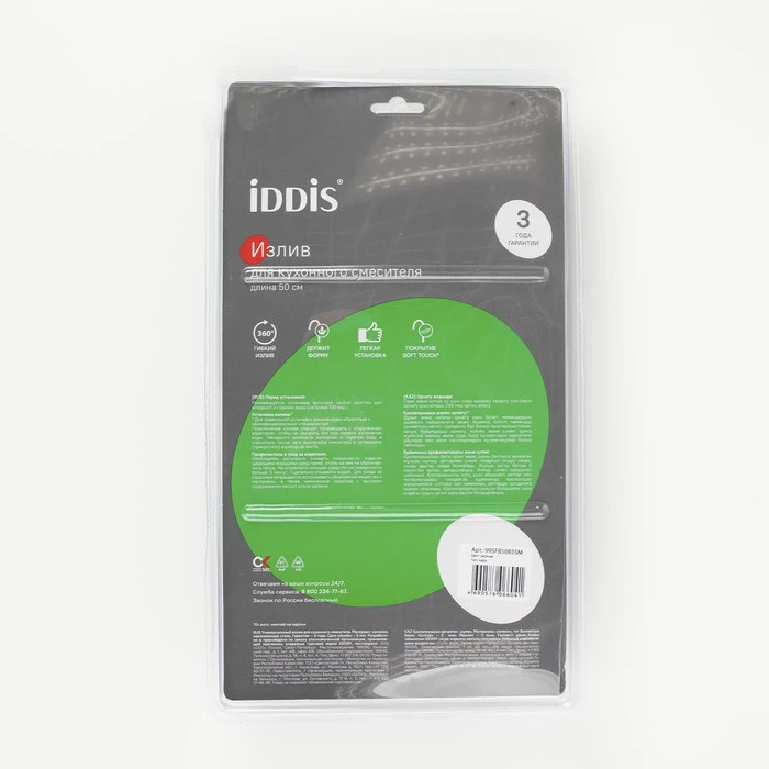 • Гарантия на аксессуары к смесителям IDDIS® – 3 года.