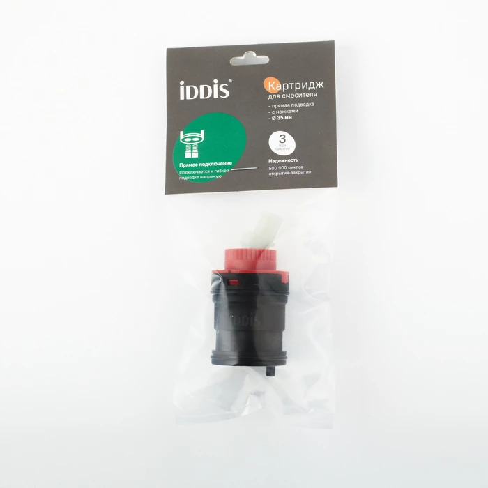 • Картридж IDDIS® подходит для комплектации новых или замены изношенных элементов смесителей. Его монтаж осуществляется прямым подключением подводки.