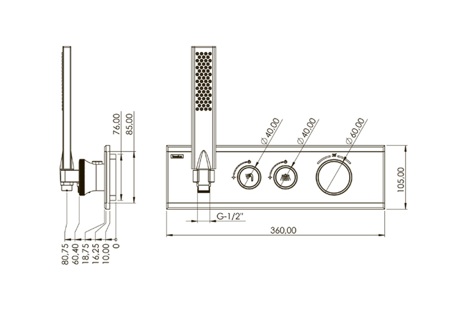Лицевая часть на 2 режима, панель, ручная лейка, шланг