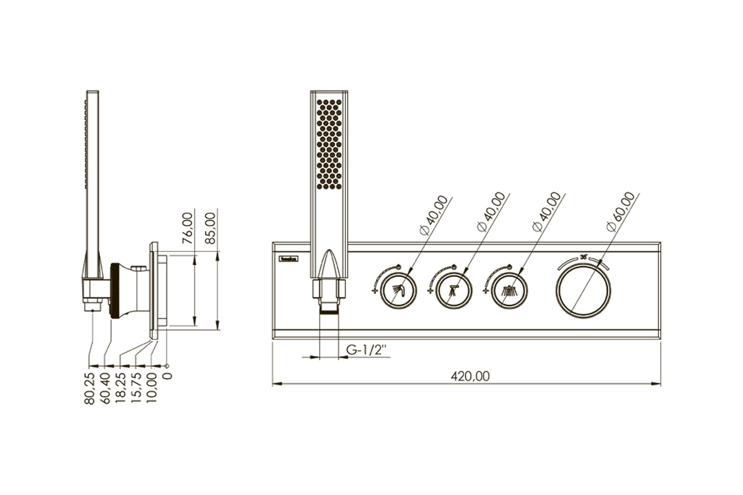 Лицевая часть на 3 режима, панель, ручная лейка, шланг