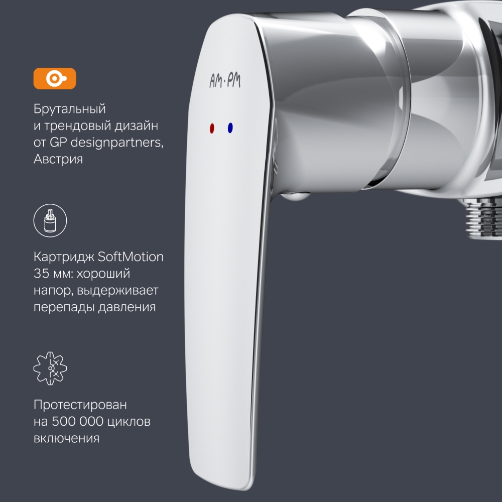 Эксклюзивная разработка: специально спроектированный для АМ.РМ керамический картридж SoftMotion 35 мм обеспечивает оптимальную регулировку температуры а также позволяет выдерживать любые перепады давления.