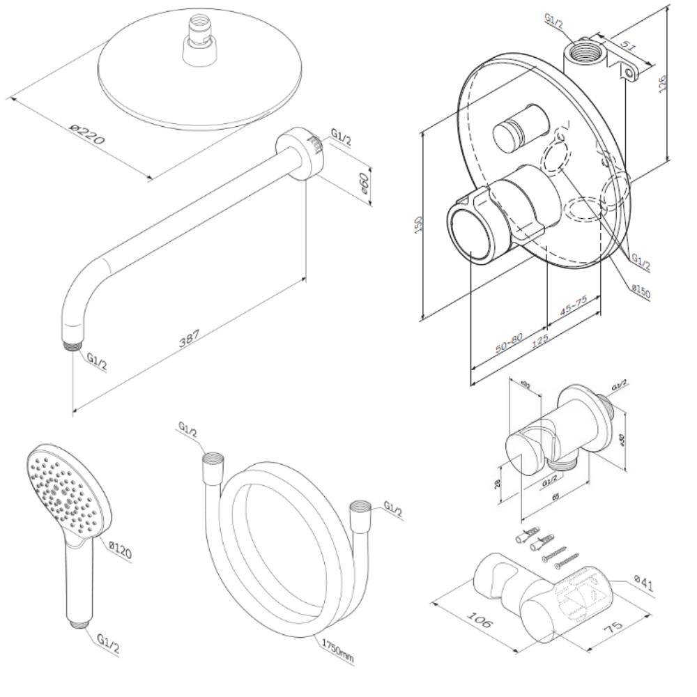 220 / 387 / 125 / 65 / 75 мм |