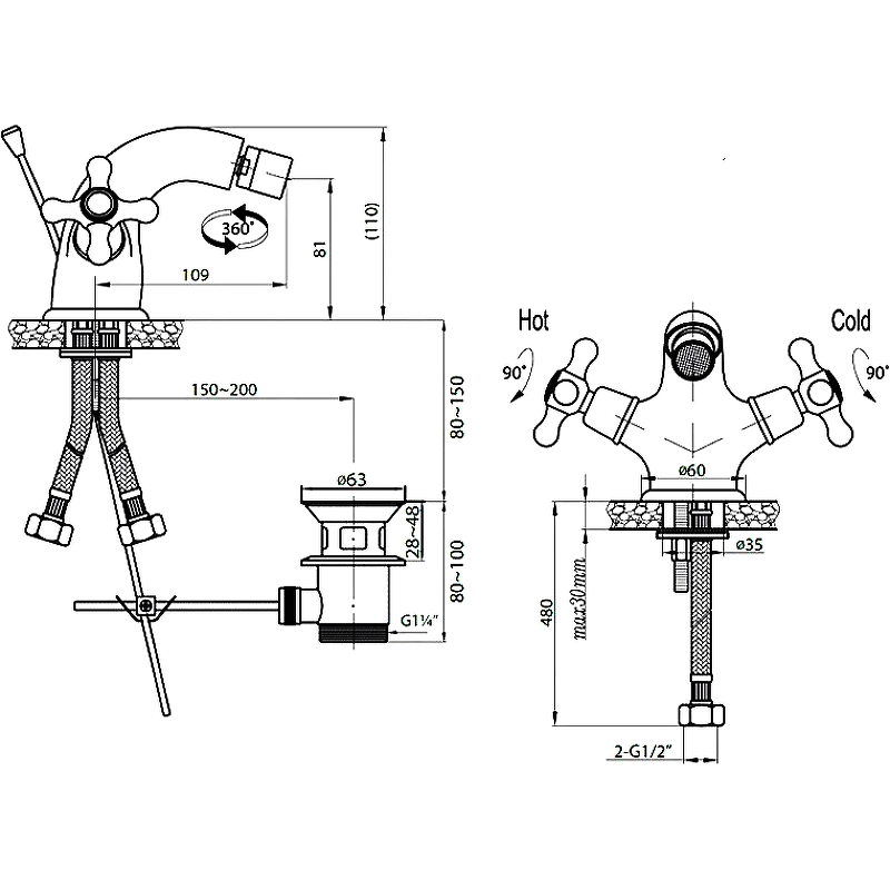 Смеситель для биде Cezares golf-bs1-02 Бронзовый