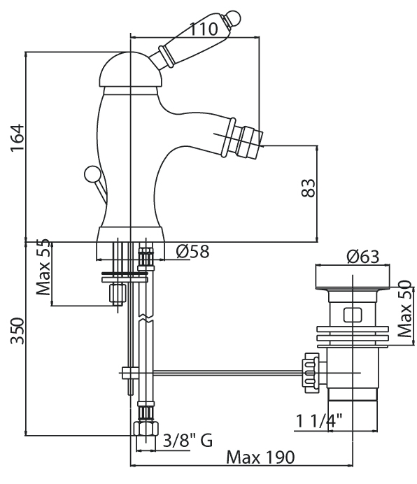 Смеситель для биде Cezares Elite ELITE-BSM1-01-M однорычажный, с аэратором, с донным клапаном, монтируемый в одно отверстие.