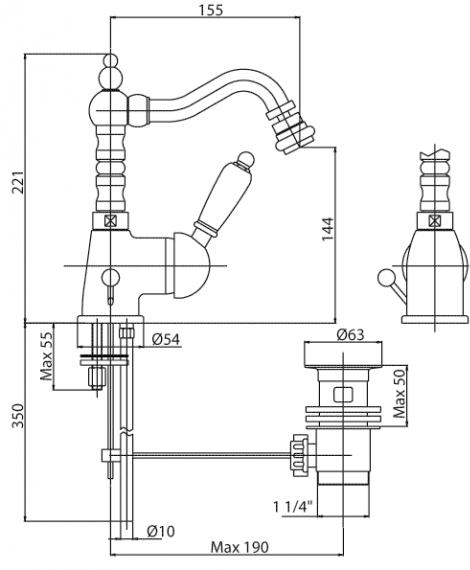 - Поворотный излив с аэратором.