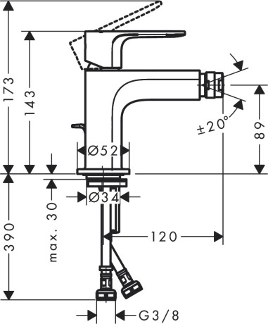 · состоит из: однорычажный смеситель для биде, слив/перелив