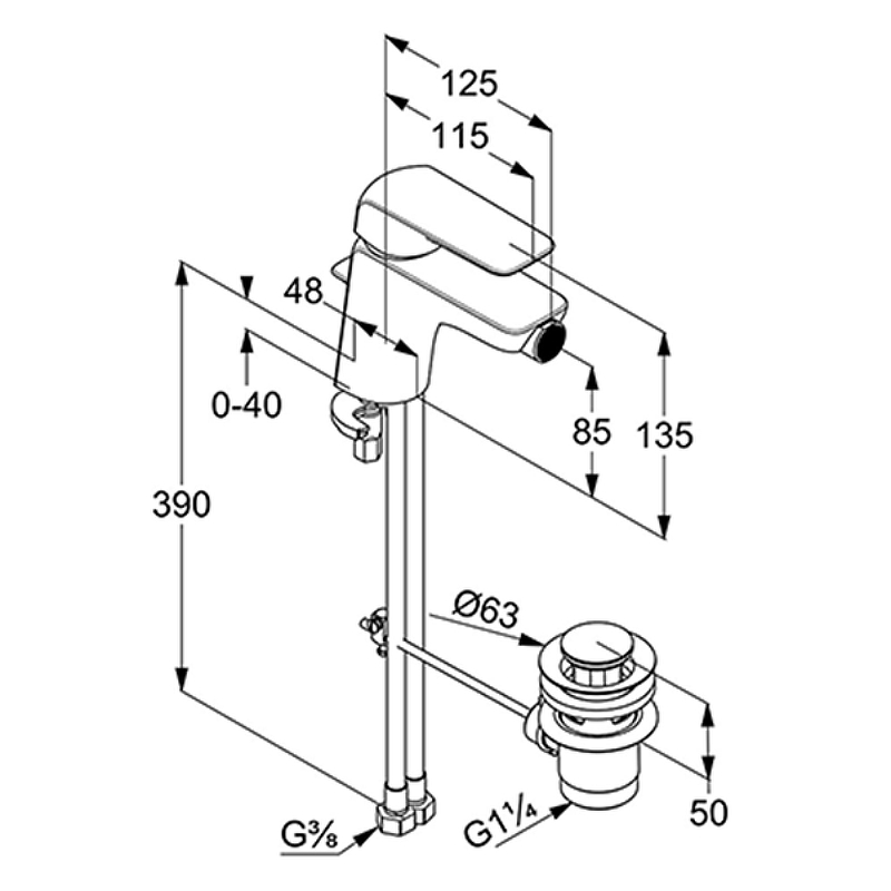 - Донный клапан: G 1 1/4.