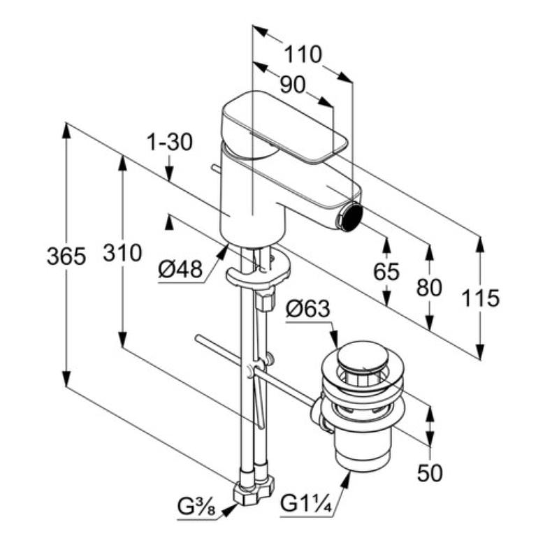 - Донный клапан G 1 1/4.