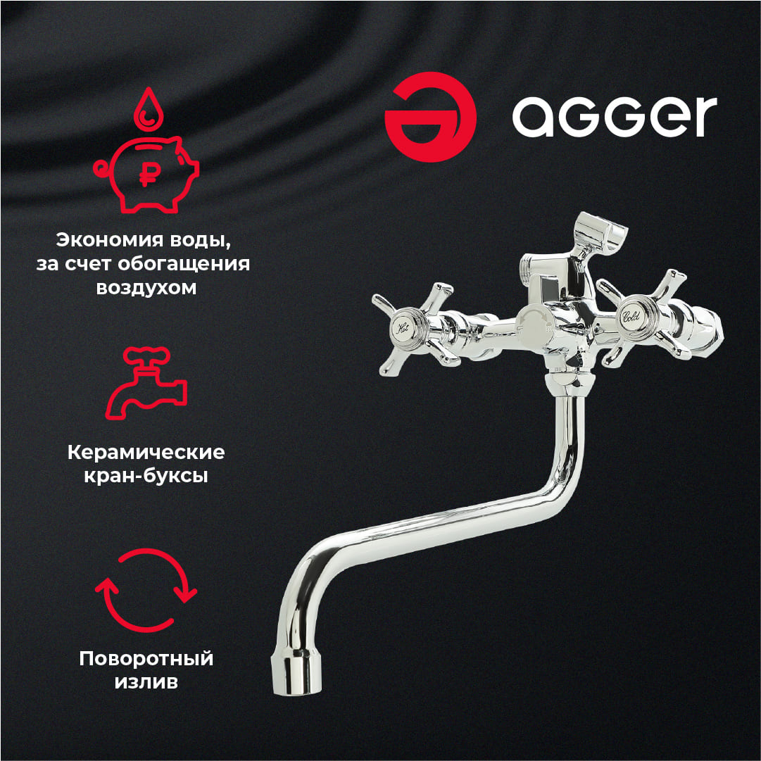Смеситель универсальный Agger a1722200 Хром для ванны универсальный излив