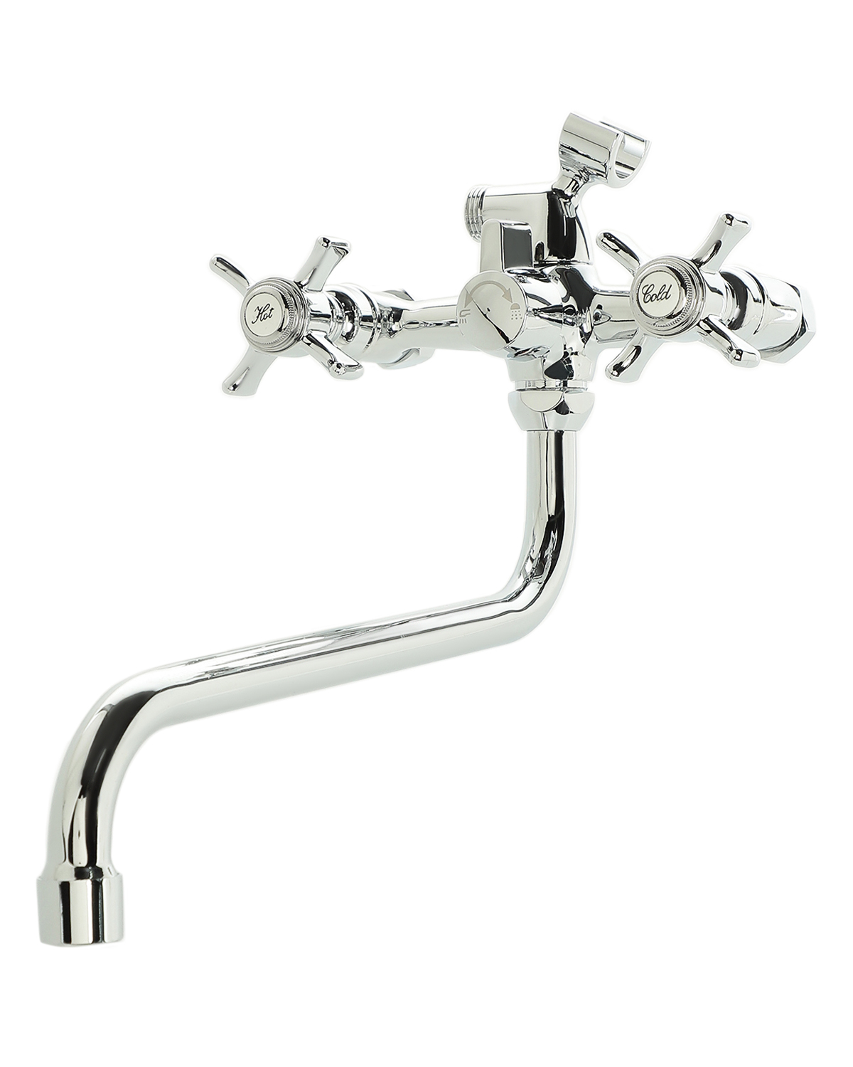 Двухзахватный смеситель для ванны/душа с универсальным изливом и душевым набором Agger Retro-X оснащен двумя элегантными вентилями. Корпус выполнен из высококачественной латуни, не подверженной коррозии от длительного контакта с водой. Хромированное покрытие, за которым очень просто ухаживать мягкой салфеткой, обеспечивает блеск на долгие годы. Надежность и долгий срок службы обеспечивают фирменные керамические кран-буксы. Встроенный аэратор экономит воду и, обогащая струю воздухом, делает её мягкой и без брызг. Керамический дивертор надежно фиксируется даже при низком давлении воды. В комплекте душевой набор: шланг 1500 мм в металлической оплетке (с защитой от перекручивания), ручной душ d68 мм (1 режим).