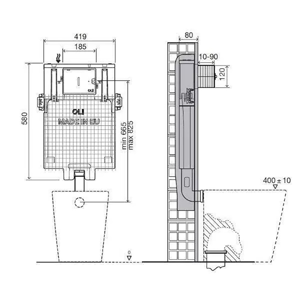 Бачок сливной скрытого монтажа для унитаза OLI 80 (CB01000885070/CB01000052624)