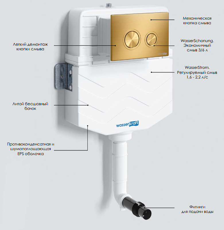 <p>Смывной бачок WasserKRAFT Aller 10TLT.031.ME.MG01 для унитаза.<p>
