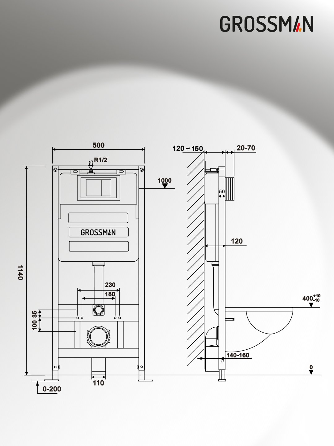 Комплект 2 в 1: инсталляция GROSSMAN 900.K31.01.000+клавиша смыва Style 700.K31.05.21M.21M черн мато
