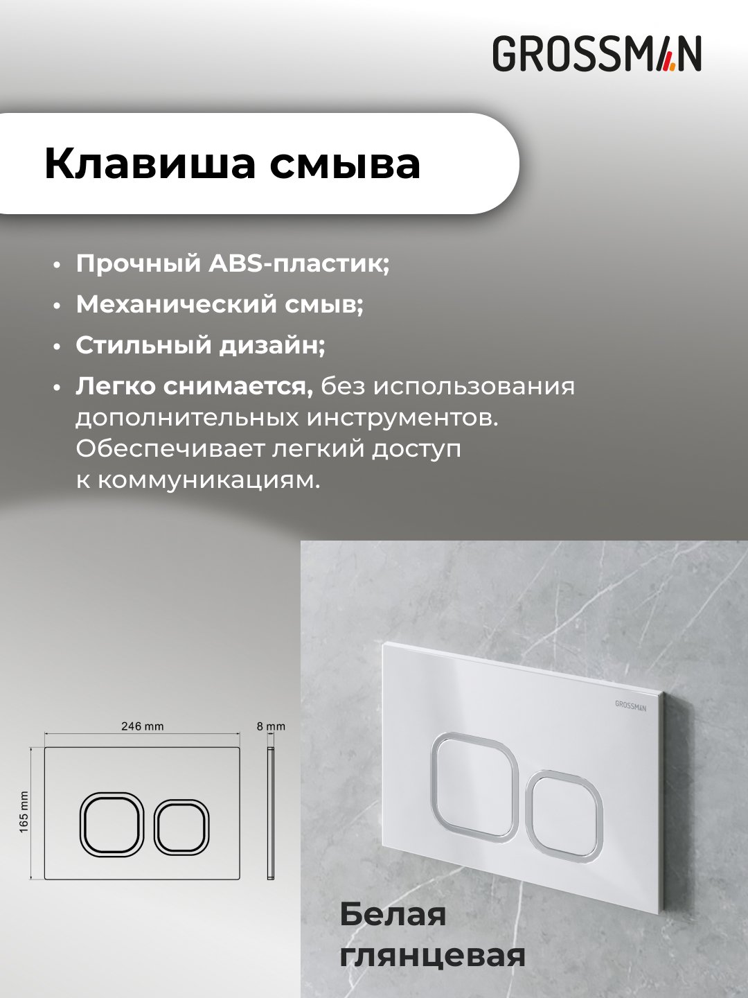 Комплект 2 в 1: инсталляция GROSSMAN 900.K31.01.000+клавиша смыва Cosmo 700.K31.02.000.000 бел гляне