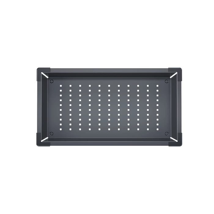 Стильный полезный аксессуар – коландер в трендовом графитовом цвете – дает новые возможности для интересных дизайнерских решений на кухне. Отверстия на дне позволяют использовать его как дополнительную рабочую поверхность: для разморозки и хранения продуктов, сушки посуды и столовых приборов, мытья овощей и фруктов.