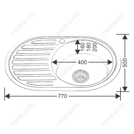 Мойка 7750 U MELANA 0,6/160 врезная овальная с сифоном (122 ta *15)