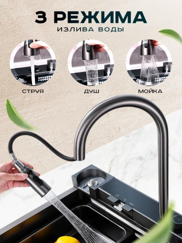 Излив с выдвижной лейкой, 3 режима, цвет графит