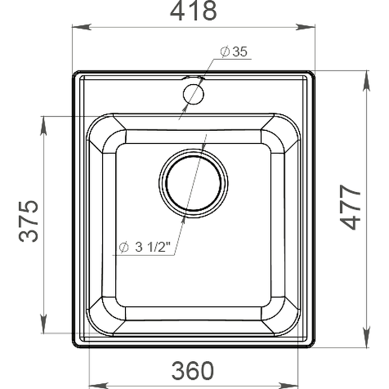 - Габариты мойки (ШхДхГ): 418 х 477 х 180 мм.