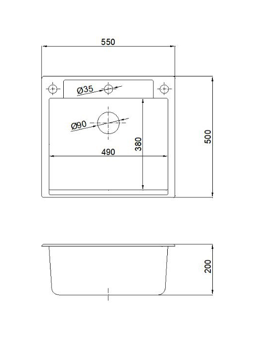 Кухонная мойка прямоугольная 550х500мм Reflexion Cubi RX1555CL, уголь