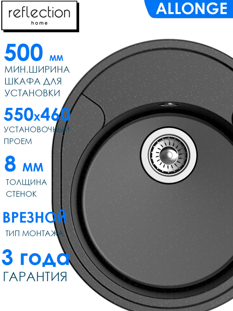 Кухонная мойка Reflection Allonge RF0658BL, черный