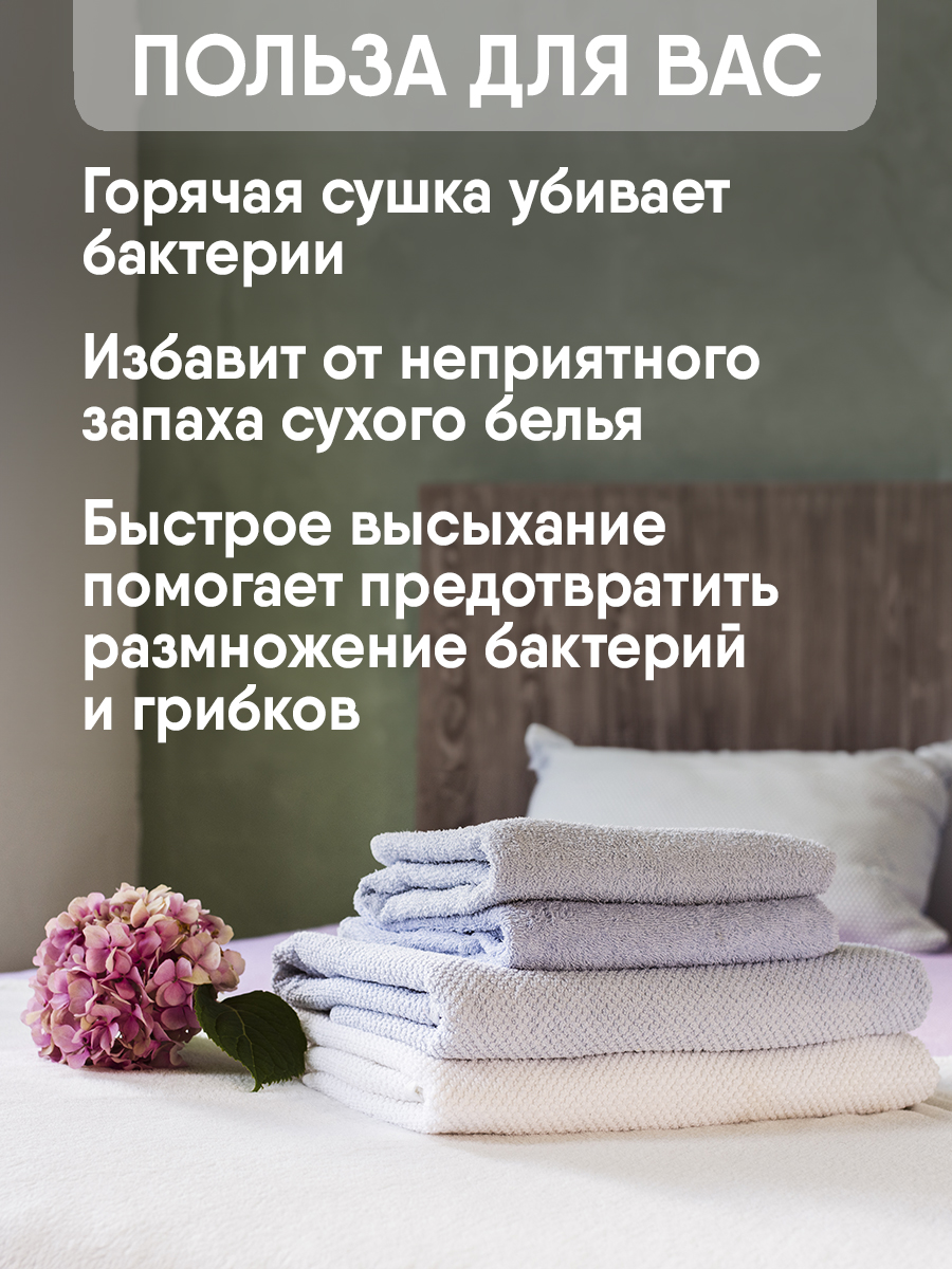 Вы сможете легко регулировать теплоотдачу и время работы, чтобы всегда иметь сухое полотенце под рукой. Нержавеющая сталь не только обеспечивает долгий срок службы сушилки, но и делает её легкой в уходе: достаточно протереть сушитель тряпкой.