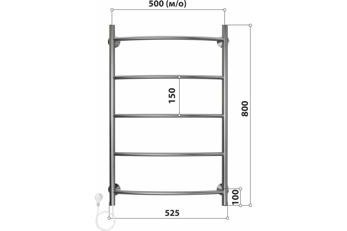 Полотенцесушитель Terminus "Стелмикс", нержавеющая сталь, электрический, серебристый 500x800