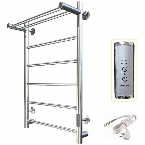 Электрический полотенцесушитель Тругор Аспект Пэк СП 1 П 80x50 с полкой в цвете хром - это незаменимый помощник в вашей ванной комнате. Он не только просушивает влажные вещи и полотенца, но и служит дополнительным источником тепла в помещении.<br/><br/>Полотенцесушитель выполнен из пищевой нержавеющей стали марки AISI 201, что обеспечивает его стойкость к высоким температурам и коррозии. Форма полотенцесушителя - лесенка с 7 перекладинами, что позволяет равномерно распределять тепло.<br/><br/>Особенностью данной модели является наличие встроенного таймера на 2 и 4 часа, который позволяет экономить электроэнергию. Максимальная температура нагрева составляет 60 градусов, что делает его безопасным для использования.<br/><br/>Подключение полотенцесушителя осуществляется скрытым электрическим соединением, что обеспечивает эстетичный вид и удобство использования. В комплект поставки входят телескопические держатели, нагревательный кабель, выключатель с таймером, шнур электропитания с вилкой и паспорт изделия.<br/><br/>Выбирая электрический полотенцесушитель Тругор Аспект Пэк СП 1 П 80x50 с полкой, вы получаете надежный, стильный и функциональный аксессуар для вашей ванной комнаты.