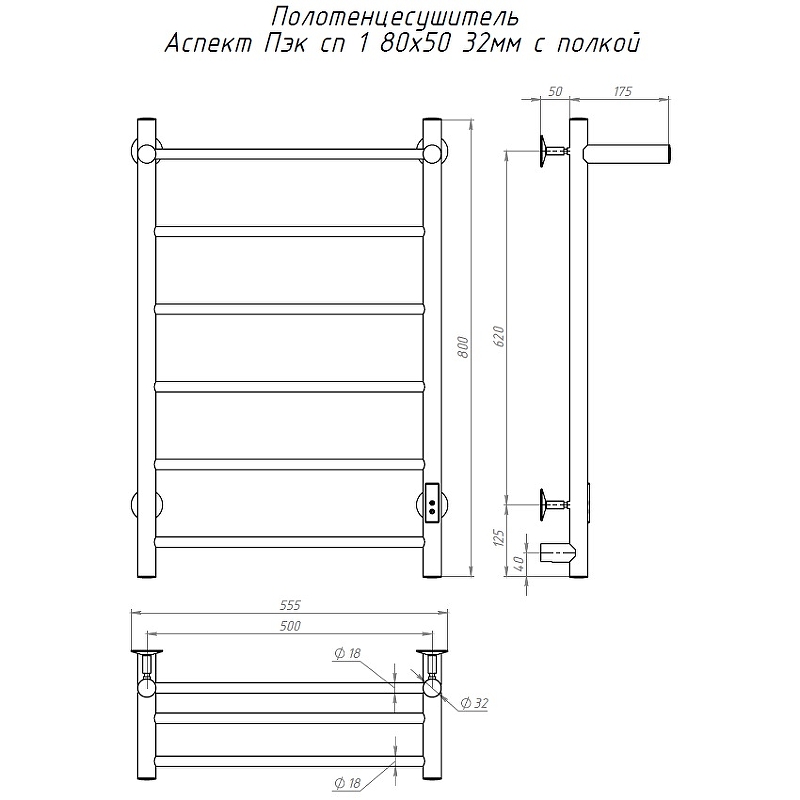 Электрический полотенцесушитель Тругор Аспект Пэк СП 1 П 80x50 с полкой Хром