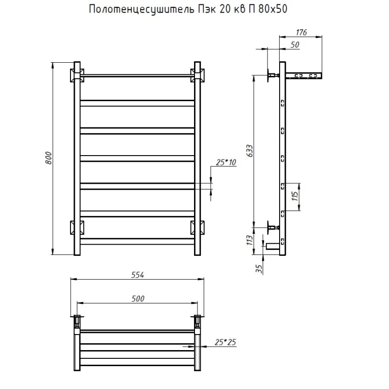 Электрический полотенцесушитель Тругор ПЭК 20 П КВ 80x50 с полкой хром - это современное и функциональное решение для вашей ванной комнаты. Он не только просушивает влажные вещи и полотенца, но и служит дополнительным источником тепла в помещении.<br/><br/>Полотенцесушитель изготовлен из пищевой нержавеющей стали марки AISI 201, которая отличается высокой стойкостью к коррозии и высоким температурам. Благодаря этому, полотенцесушитель прослужит вам долгие годы, сохраняя свой первоначальный вид.<br/><br/>Форма полотенцесушителя - лесенка, с 8 перекладинами. Это обеспечивает равномерное распределение тепла и позволяет быстро просушить большое количество одежды.<br/><br/>Высота полотенцесушителя составляет 80 см, ширина - 52,5 см, а толщина стали - 2 мм. Это делает его компактным и удобным для установки в любом помещении.<br/><br/>Теплоноситель в полотенцесушителе - сухой, с использованием специального нагревательного кабеля. Это обеспечивает безопасность использования и экономию электроэнергии.<br/><br/>Выключатель расположен на вилке полотенцесушителя, что делает его использование еще более удобным.<br/><br/>Мощность потребления составляет всего 60 Вт, что делает его экономичным в использовании. Подключение осуществляется с помощью электропровода с вилкой, что обеспечивает простоту установки.<br/><br/>В комплект поставки входят: полотенцесушитель, телескопический держатель (4 шт.), нагревательный кабель, шнур электропитания с вилкой и кнопкой включения, а также паспорт изделия.<br/><br/>Антимикробное покрытие полотенцесушителя обеспечивает дополнительную защиту от бактерий и микроорганизмов.<br/><br/>Выбирайте электрический полотенцесушитель Тругор ПЭК 20 П КВ 80x50 с полкой хром для вашей ванной комнаты и наслаждайтесь комфортом и уютом в вашем доме.